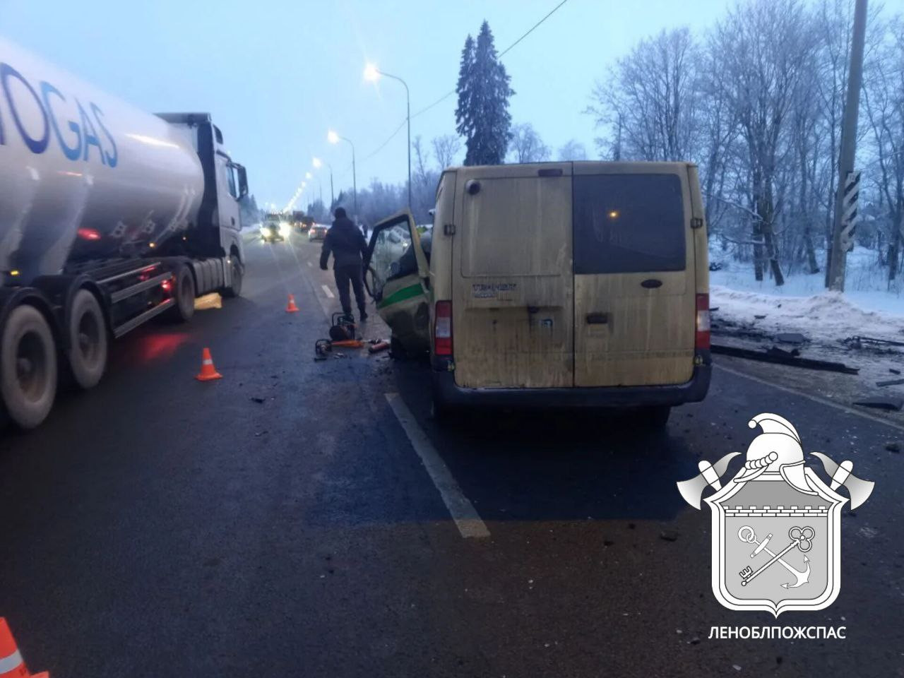 Сообщение об аварии поступило 27 января 2026 года в 17:00. Дорожное происшествие случилось на трассе «Нарва» напротив деревни Кайкино Ленинградской области.