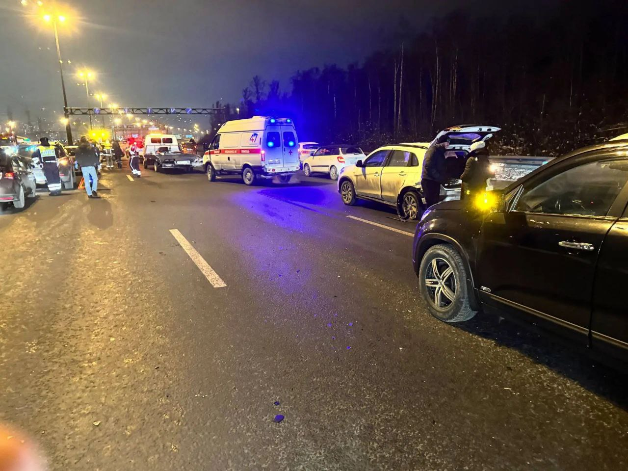 Вечером 27 января на внешнем кольце КАД (200 метров от съезда на Мурманское шоссе) произошла массовая дорожная авария с участием восьми легковых автомобилей.