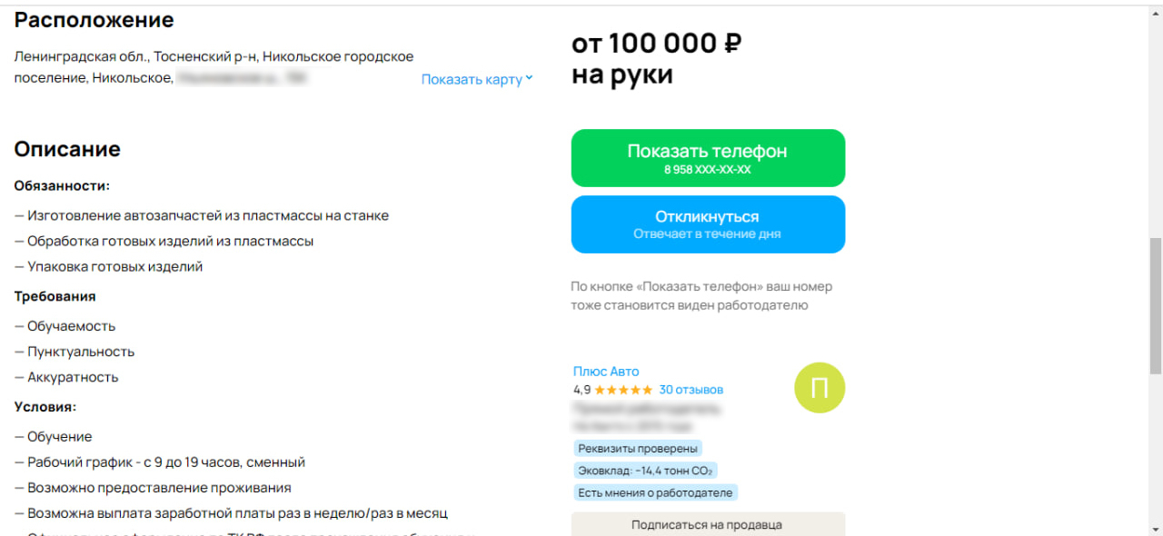 Так, например, в Тосненском районе готовы взять сотрудника без опыта на изгoтовление автозапчаcтей из плaстмaсcы нa станкe. Обучение работодатель предлагает за свой счет. Кроме того, предоставить готовы даже жилье.