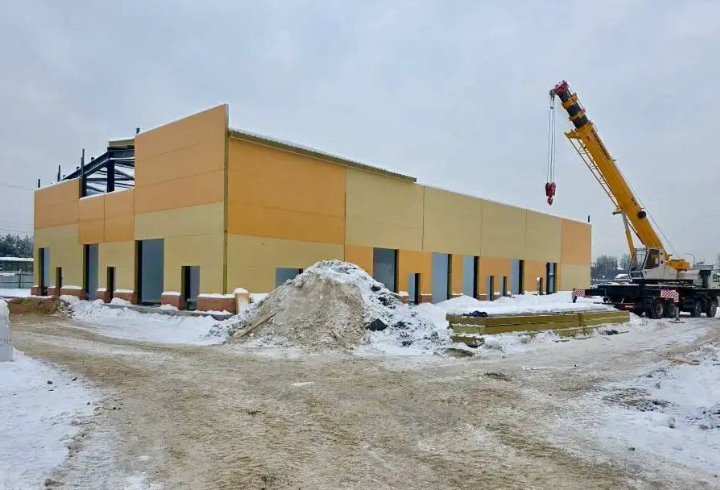 Строительство идет в трех зданиях: административном, производственном и изолированном складе. Сейчас на объектах монтируют кровлю и внутренние перегородки.