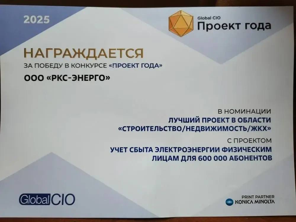 Масштабный цифровой проект компании «РКС-энерго» признан лучшим в стране. Инициатива «Учет сбыта электроэнергии физическим лицам для 600 тысяч абонентов» одержала победу в федеральном конкурсе «Проект года-2025» в номинации «Лучшее отраслевое решение».