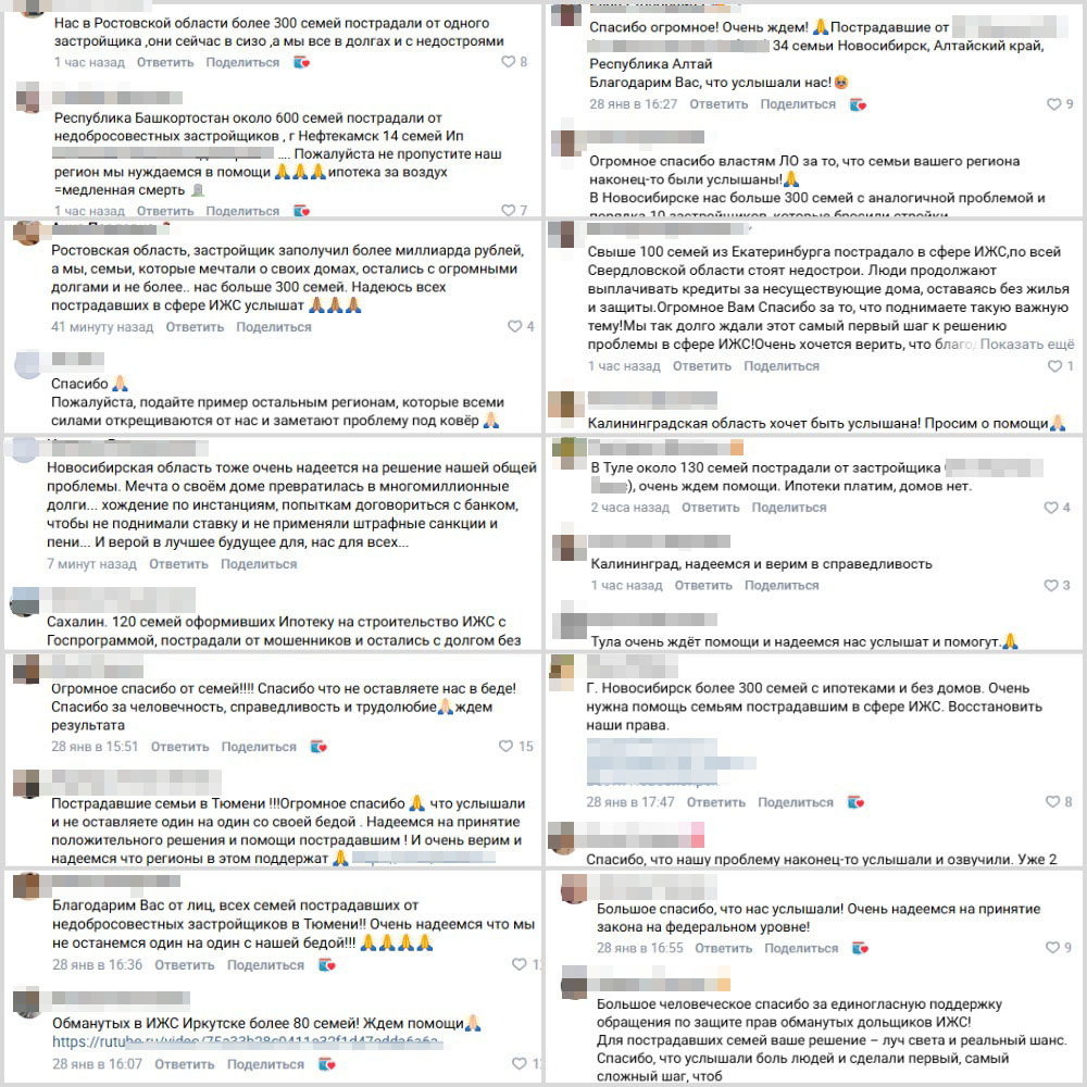 Примечательно, что на новость об этом откликнулись жители многих других регионов страны. Но в подавляющем большинстве случаев их истории примерно одинаковые: семья взяла ипотеку на строительство дома, но в итоге осталась с долгами и без жилья. Все эти сообщения лишь подтвердили, что вопрос нельзя решить точечно, а необходим комплексный подход.