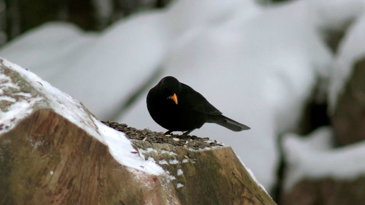 Черный дрозд получил своё название по окрасу самца: у него черное как уголь оперение с ярко-желтым клювом и обводкой вокруг глаз. Самка отличается скромным бурым оперением. Птицы иногда остаются зимовать в Ленинградской области и Санкт-Петербурге, хотя основная часть мигрирует в Западную Европу. В городских парках зимуют чаще всего взрослые самцы, которые во второй половине января начинают радовать жителей нежной трелью, иногда даже имитируя звуки сирены скорой помощи или звонка телефона.