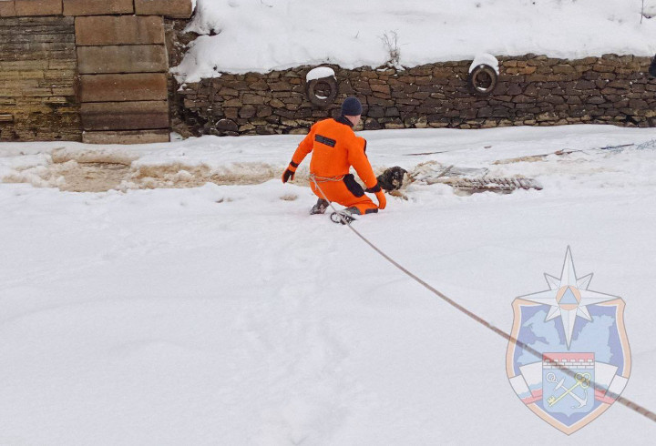 Спасатели незамедлительно выдвинулись к месту и оперативно провели спасательную операцию. Используя специальное снаряжение, они извлекли животное из ледяной воды.