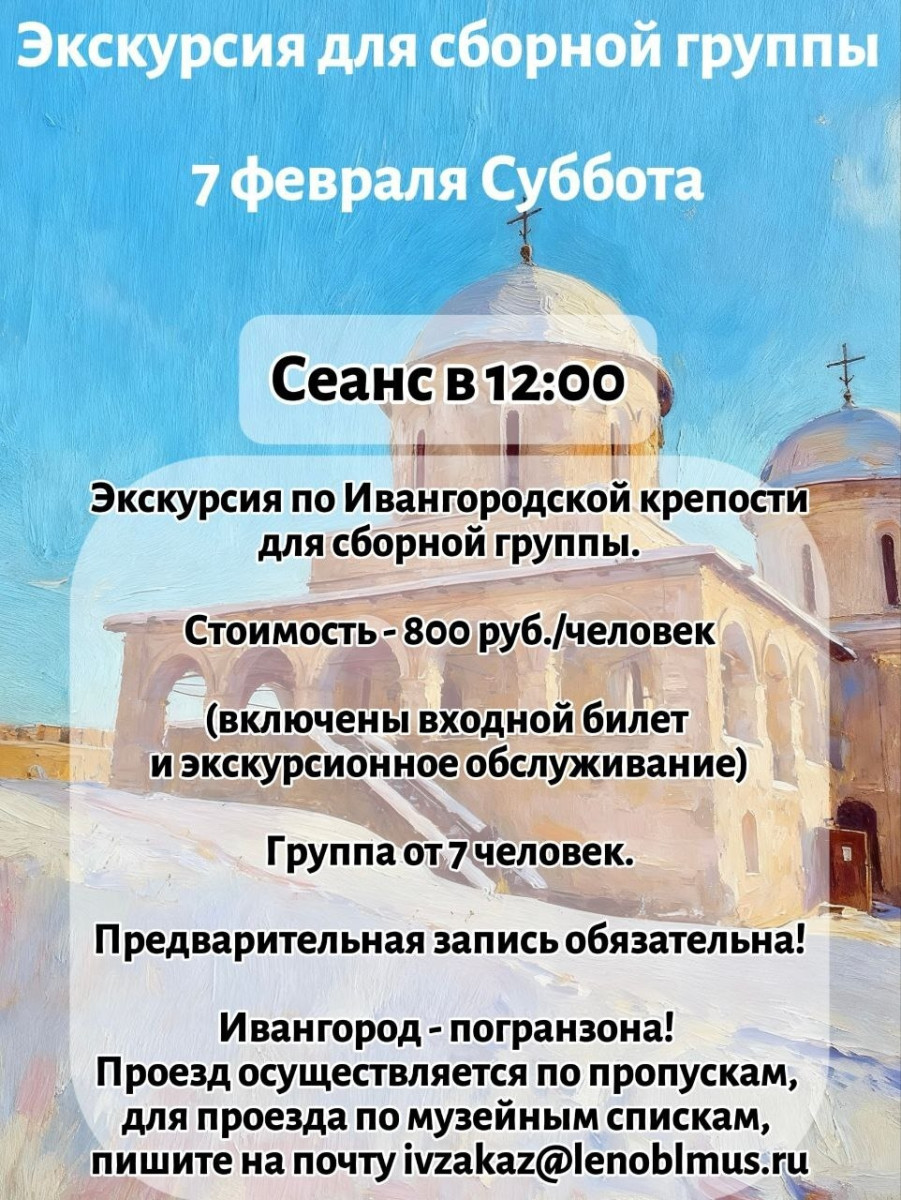 Также ленинградцев в эти выходные приглашают провести время в стенах Ивангородской крепости. 7 февраля там проведут экскурсию по крепости XV—XVIII веков. Расскажут о том, какую роль сыграло сооружение в ходе Северной войны России со Швецией, и как его восстанавливали после Великой Отечественной войны. Увидеть своими глазами, какой стала многовековая постройка и как сегодня выглядит погранзона можно уже в субботу. Начало экскурсии в 12 часов.