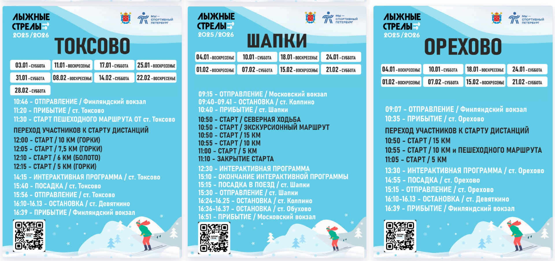 Также в выходные ленинградцев и петербуржцев будут ждать на лыжных трассах в Токсово и Орехово. Из Петербурга добраться до точек можно будет на специальных электричках «Лыжные стрелы», которые будут отправляться с Финляндского и Московского вокзалов.