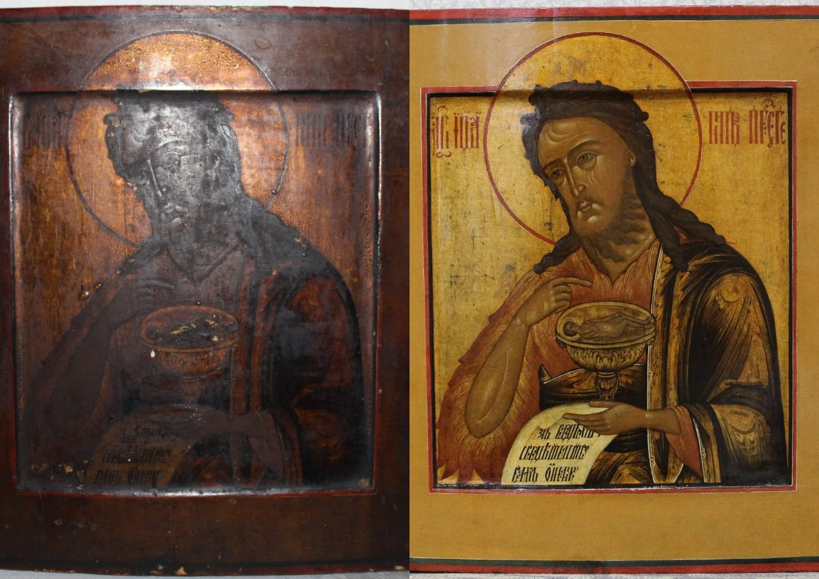 Кроме того, для иконы «Господь Вседержитель» точно определили художественную школу – ярославскую старообрядческую живопись. Реставраторы также расчистили икону «Иоанн Предтеча», относящуюся к середине XIX века.