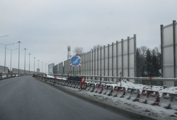 С 12 по 28 февраля будет перекрыта первая полоса движения на 1-ом километре внешнего кольца, а на второй полосе будет введено ограничение скорости до 50 км/ч. Ограничения связаны с установкой шумозащитных экранов.