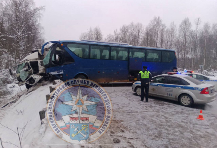 Сегодня утром на автодороге городского поселения Синявино Кировского района произошло дорожно-транспортное происшествие с участием грузового автомобиля КамАЗ и пассажирского автобуса Ecars.