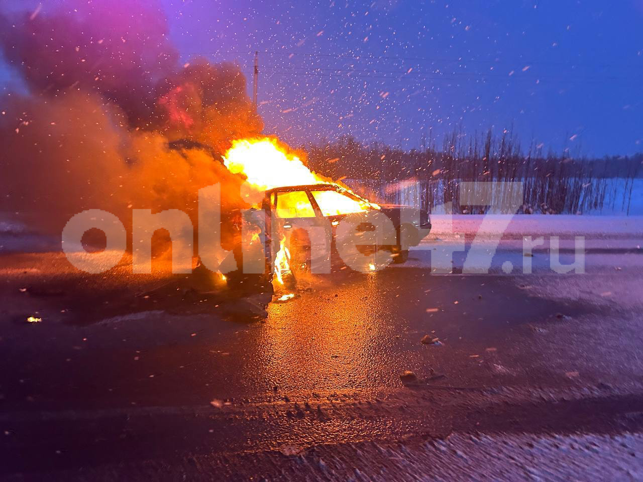 В результате аварии произошло возгорание одного из участников ДТП — автомобиля «Ауди 80». Машина полностью выгорела, все сгораемые части транспортного средства были уничтожены огнем.