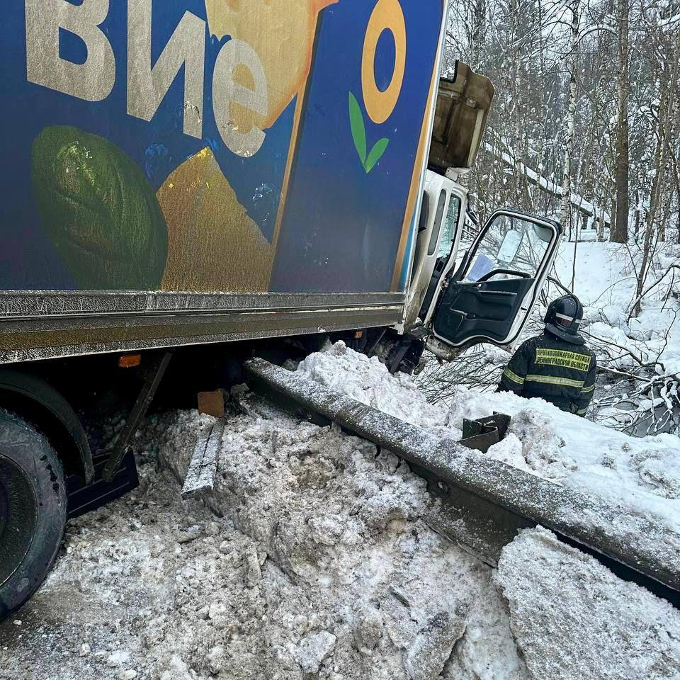 Авария произошла в районе Синявино. В результате удара водитель грузовика оказался зажат в кабине.
