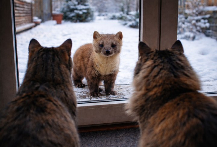 По словам хозяйки, зверек приходит к установленной во дворе кормушке для птиц. При этом на самих пернатых куница не охотится - ограничивается «угощениями».