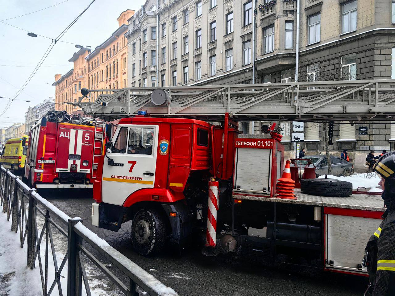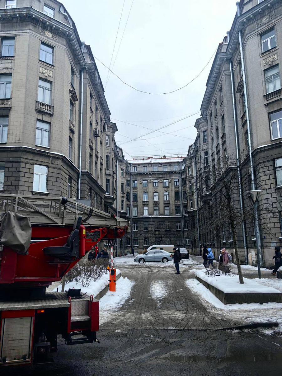 В Центральном районе Санкт-Петербурга дворник во время уборки снега сорвался с крыши пятиэтажного дома и зацепился за линии электропередачи.