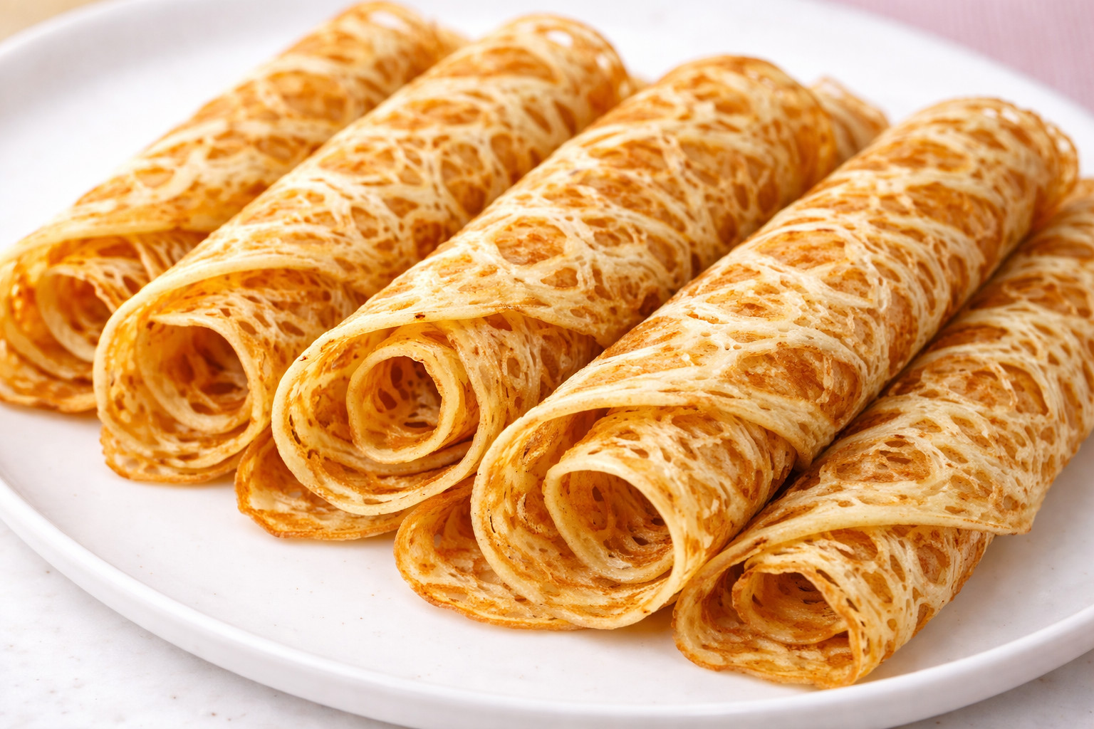 Как готовить: смешайте кефир, яйца, сахар и соль. Добавьте муку. Влейте кипяток и внесите соду. Переложите тесто в бутылку/пакет с узким носиком и тонкой струйкой «рисуйте» узоры на горячей сковороде. Жарьте 1-2 минуты.
