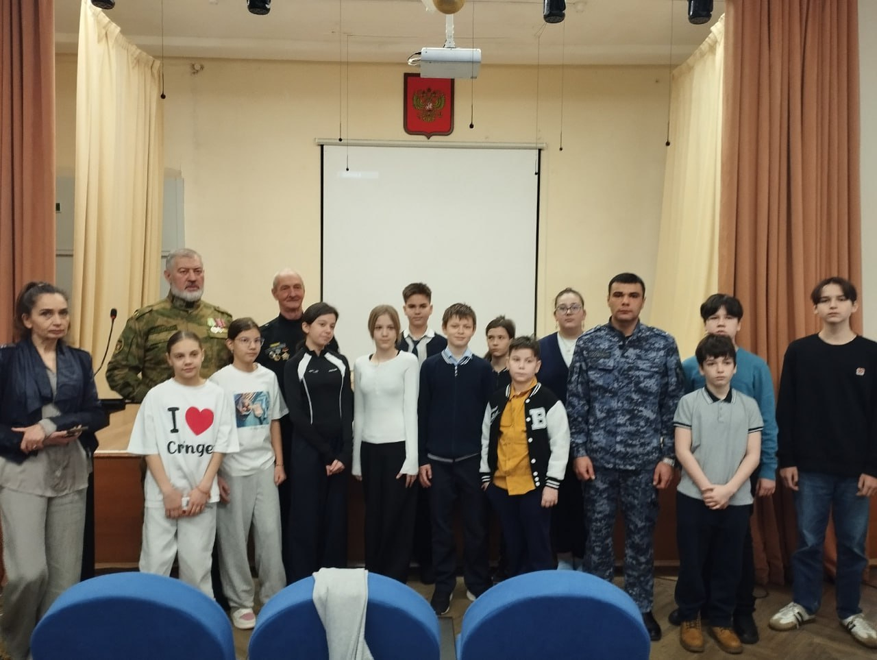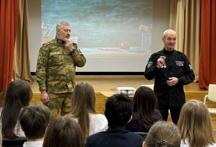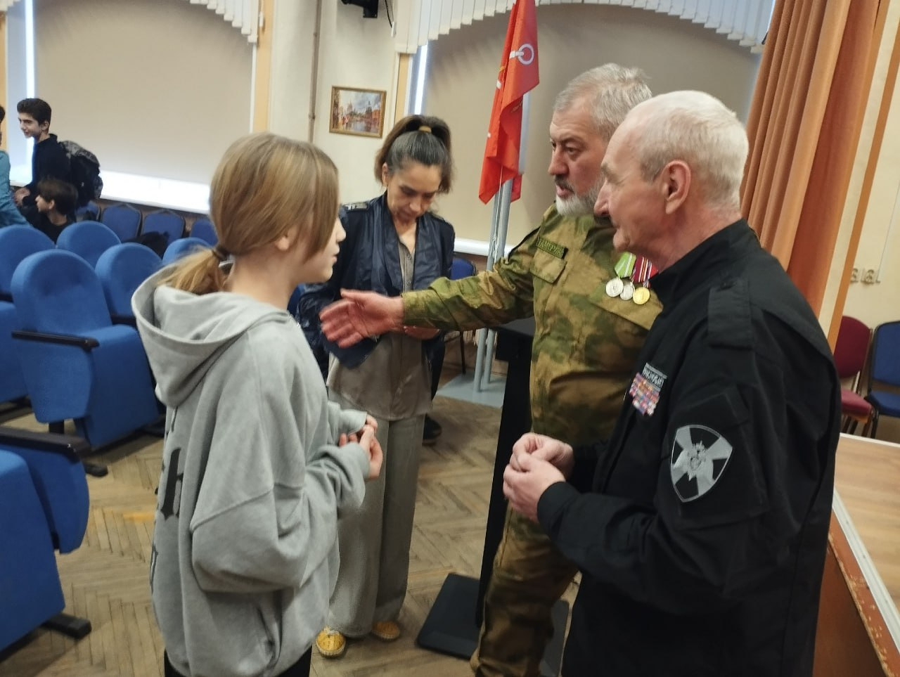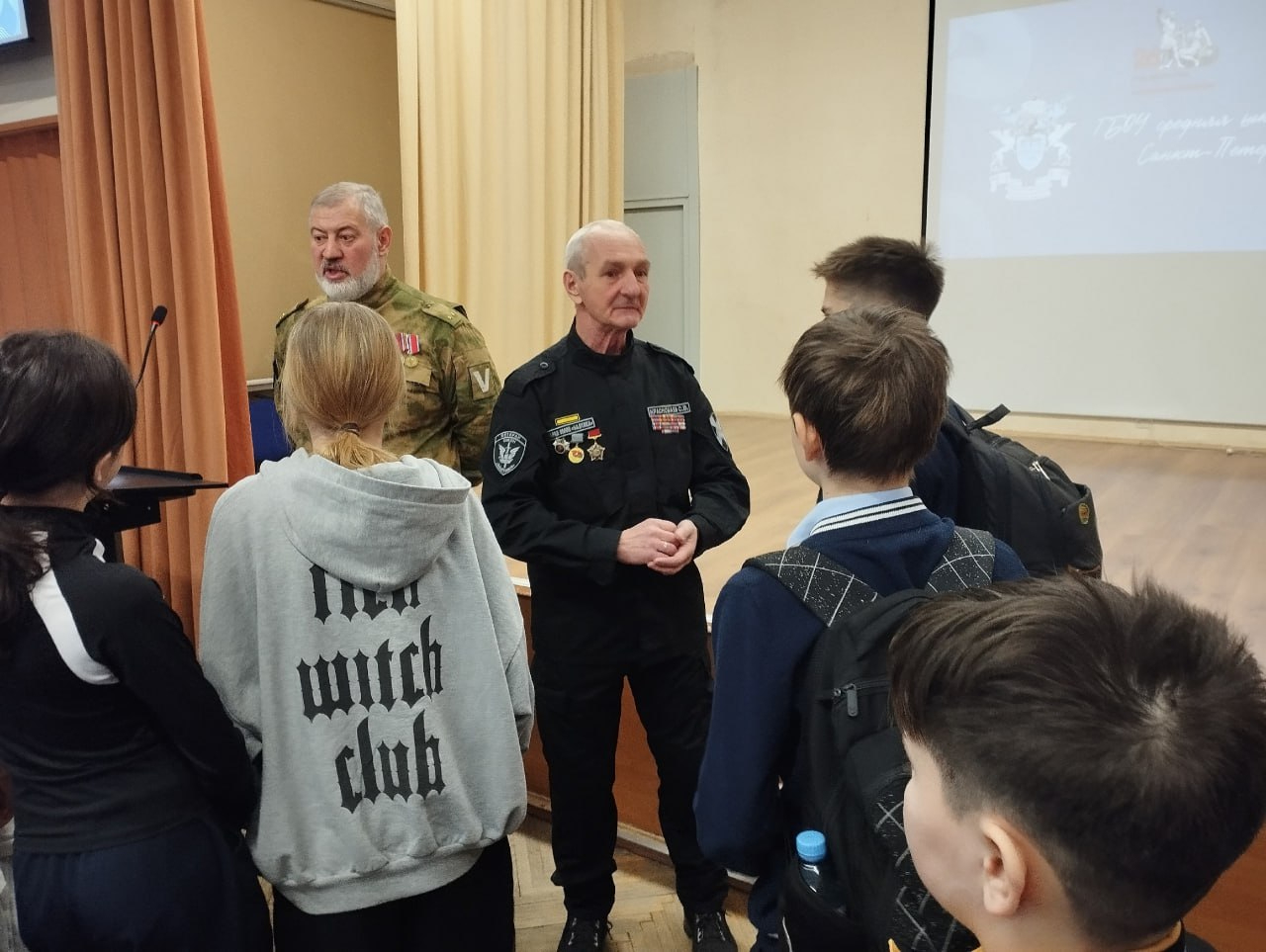 Со школьниками пообщались ветераны ОМОН «Балтика», представители организации Боевое братство, участники боевых действий в Афганистане, на Северном Кавказе и в зоне СВО.