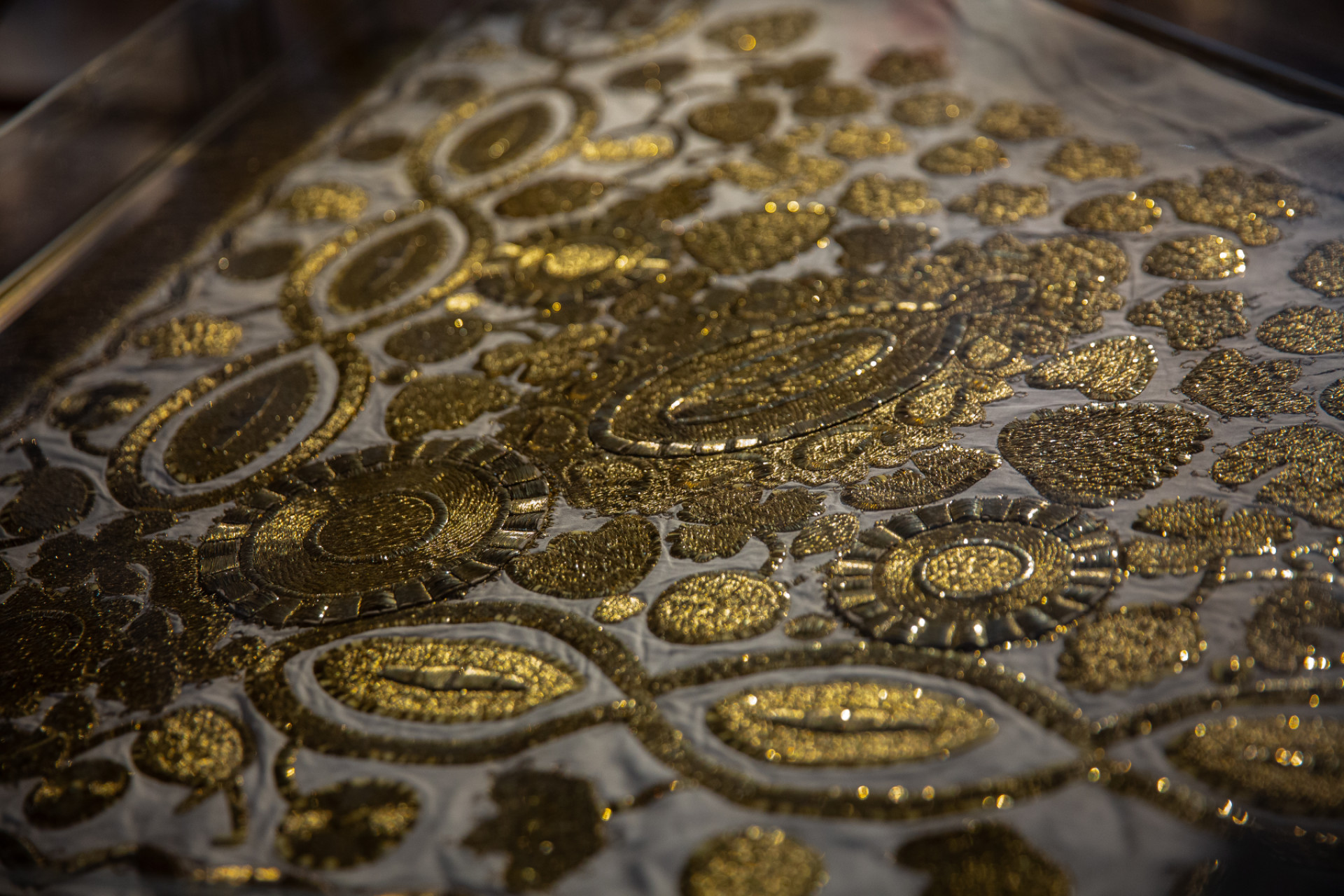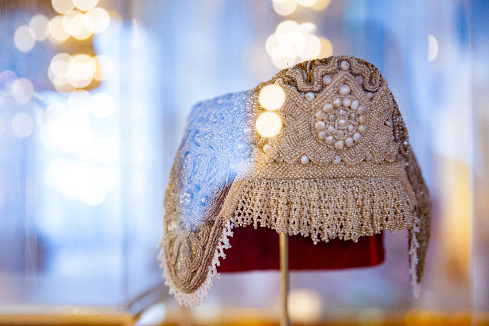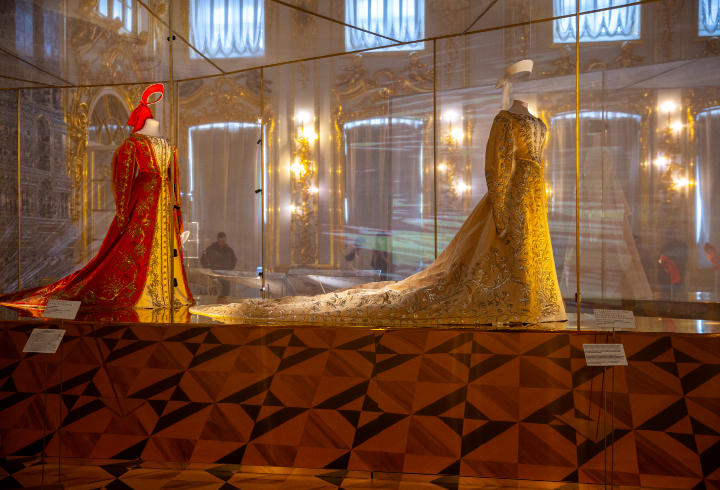 В антикамерах и тронном зале дворца можно увидеть 60 предметов. Это расшитые золотом мундиры и платья императорского двора, а также головные уборы крестьянок Русского Севера.