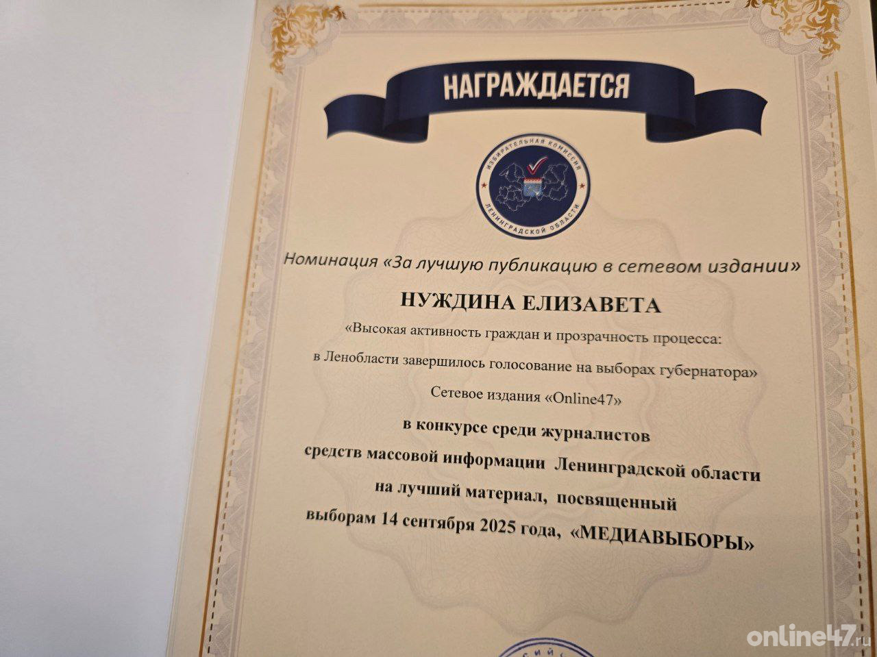 Награды вручали в шести номинациях, включая конкурс среди журналистов «Медиавыборы», посвященный выборам 14 сентября 2025 года. За лучшую публикацию в сетевом издании грамотой отметили корреспондента Online47 Елизавету Нуждину.
