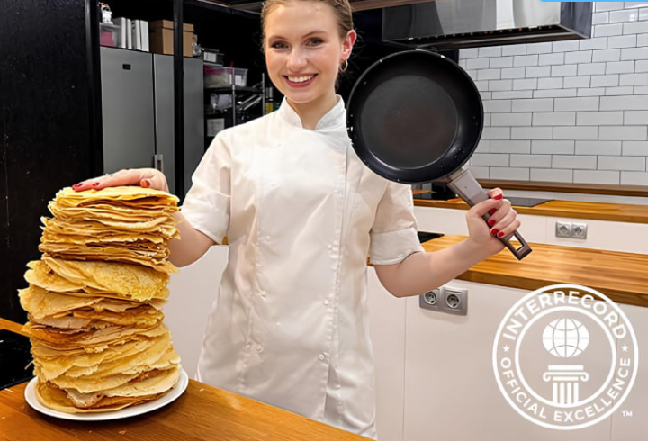 Студентка петербургского кулинарного колледжа Александра Рогова испекла 199 блинов за час. В официальный рекорд засчитали 173 изделия, соответствующие критериям по размеру и цвету. Общий вес зачтенных блинов составил 7,5 кг, пишет ТАСС.