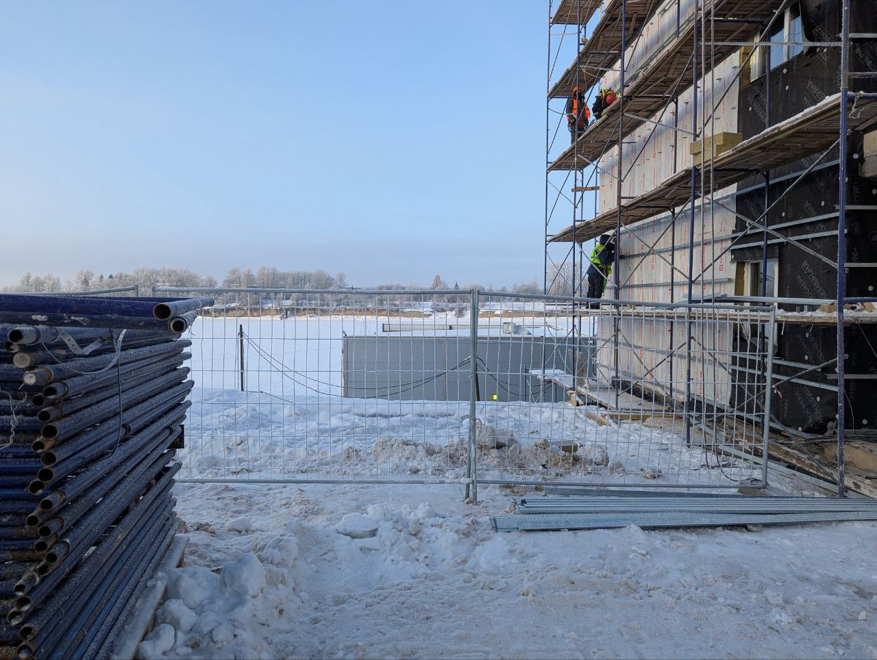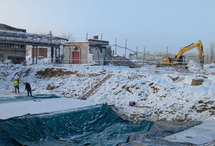 Сейчас на объекте задействованы 115 специалистов и 12 единиц техники. Ведутся отделочные работы в административно-бытовом корпусе, монтаж инженерных сетей и разработка котлована под основные сооружения.