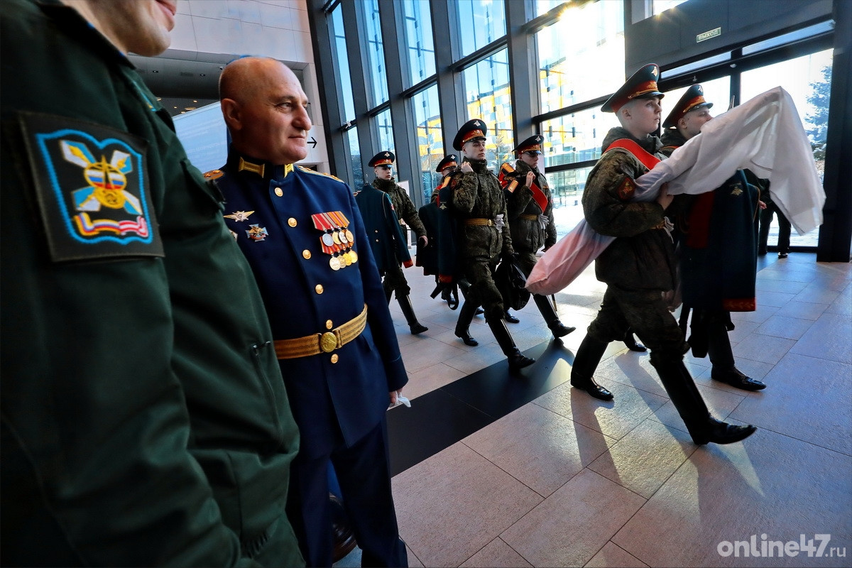 Торжественная часть завершилась награждением. Губернатор Александр Дрозденко и председатель Заксобрания Сергей Бебенин вручили почетные грамоты и благодарности ветеранам СВО.