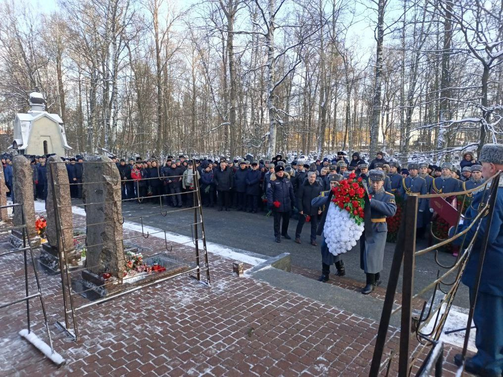 Сегодня, 23 февраля, на Серафимовском кладбище состоялось мероприятие, приуроченное к 35-й годовщине гибели девяти ленинградских пожарных. Спасатели погибли при тушении огня в гостинице «Ленинград» в 1991 году. В память о сотрудниках 11-й пожарной части Калининского района была проведена заупокойная лития и объявлена минута молчания. Как отметили в пресс-службе ГКУ «Ленинградская областная противопожарно-спасательная служба», их действия в чрезвычайной ситуации стали примером верности профессиональному долгу и героизма.