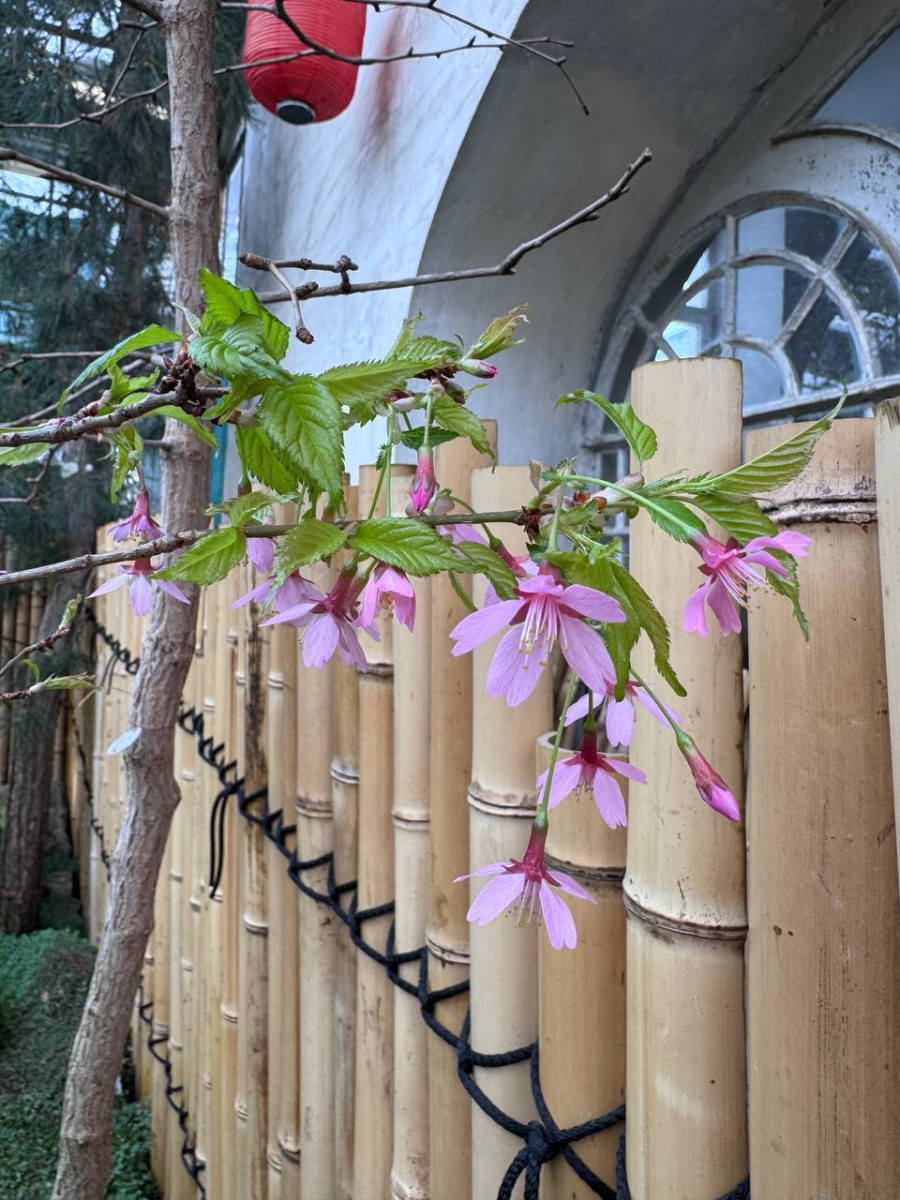 В Ботаническом саду Петра Великого распустились первые цветки сакуры, сообщает пресс-служба учреждения.
