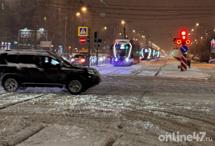 Как сообщают читатели Online47, одну линию замело, так что общественному транспорту приходится пропускать друг друга.