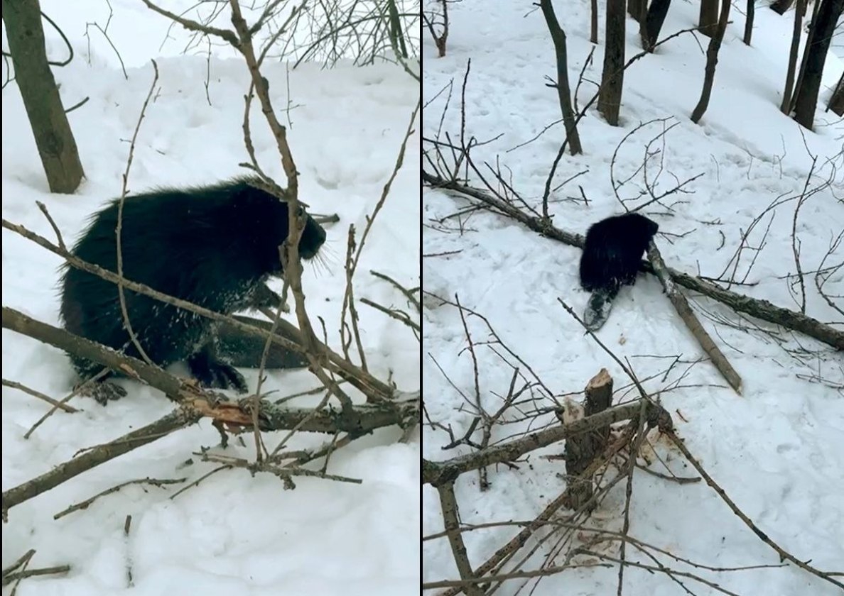 «Животное способно на резкий полутораметровый прыжок, и может нанести человеку серьезную травму своими острыми как бритва резцами. Заточенность зубов он продемонстрировал, за считанные минуты отпилив, словно пилой, кусок дерева — после чего деловито потащил его к реке. Во льду бобр прогрыз прорубь, через которую он и попадает в свою нору, вырытую в крутом берегу Черной речки», - отметил Павел Глазков.