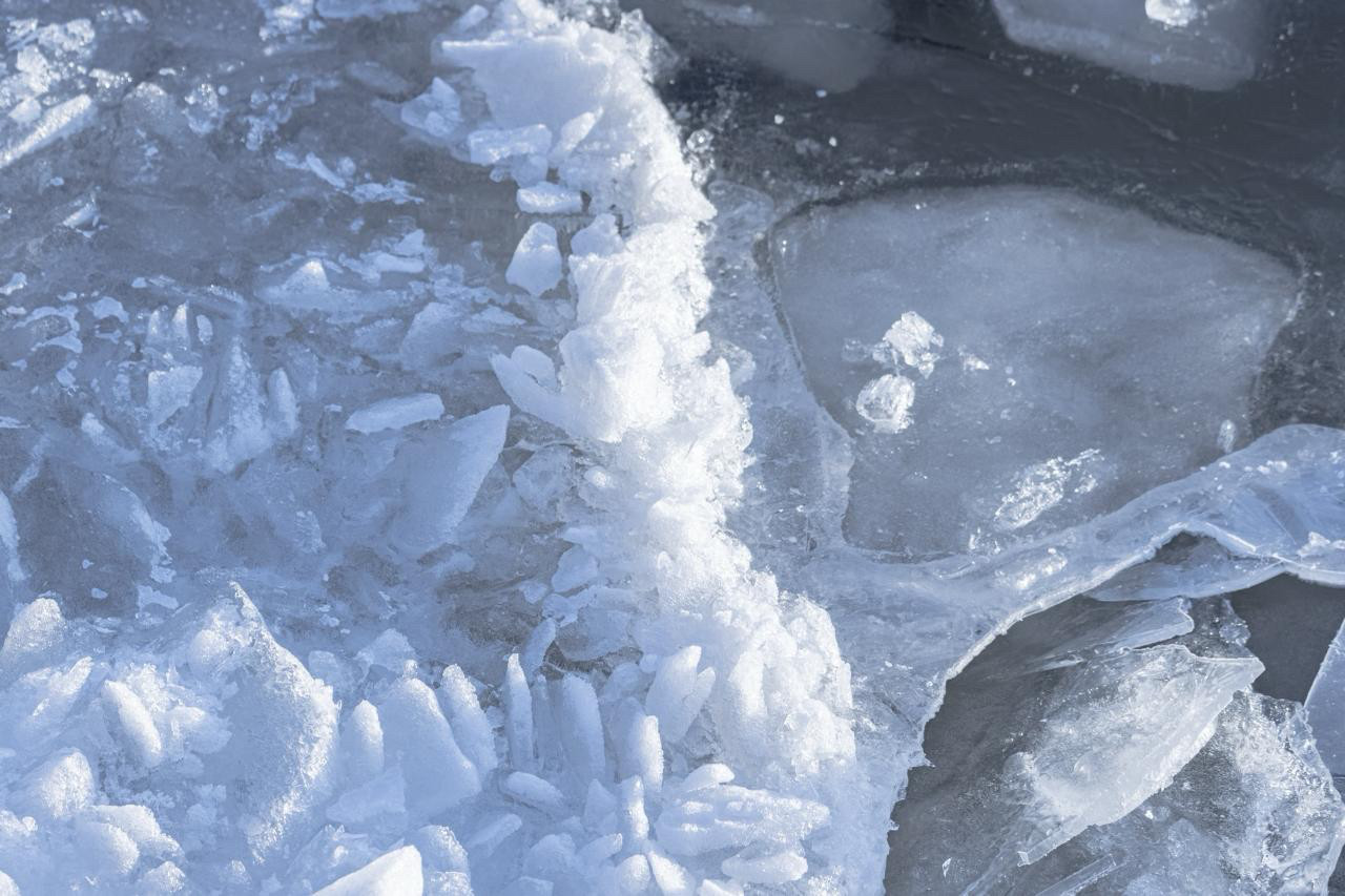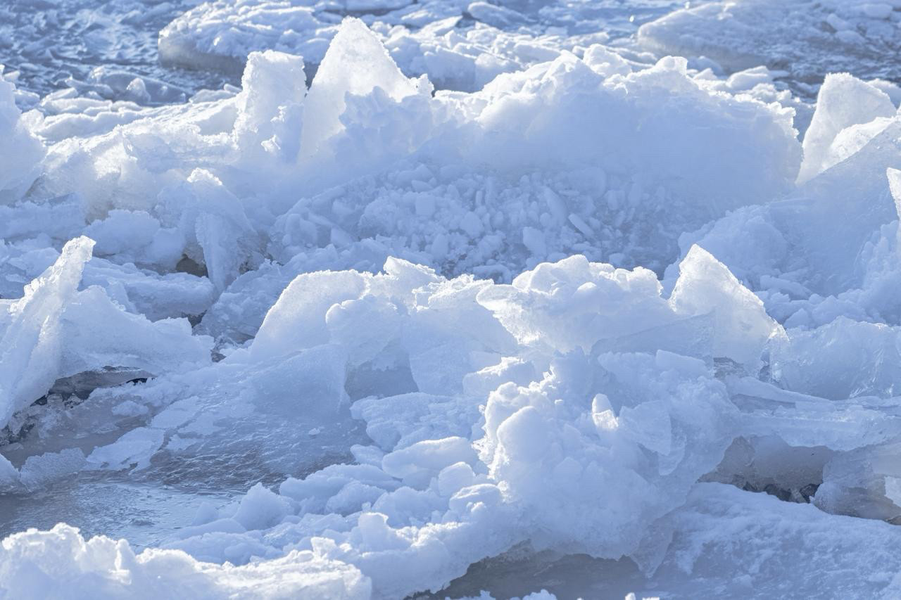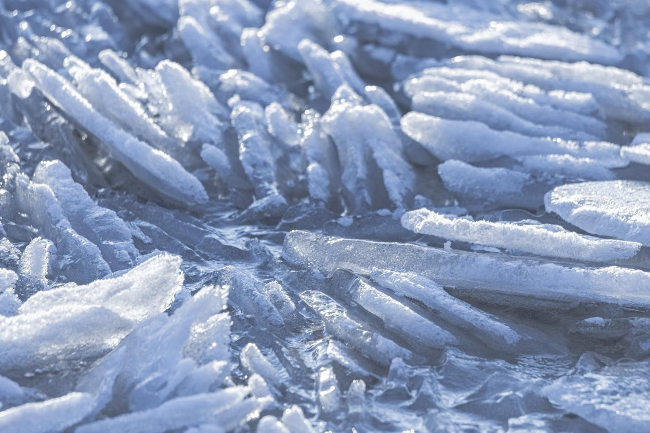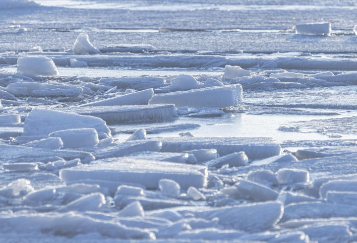 Утром вдоль побережья можно наблюдать необычные ледяные формы — от смерзшихся «блинов» до причудливых нагромождений льдин. Но выходить на весенний лёд уже опасно: он становится тонким и нестабильным.