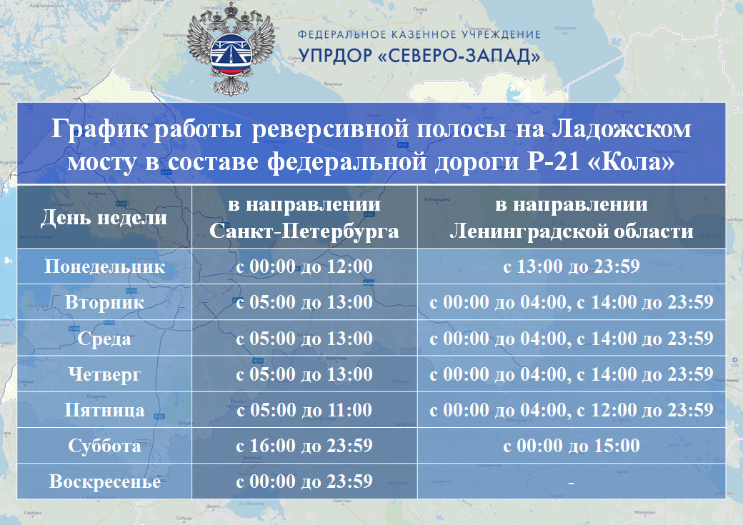 На Ладожском мосту в составе федеральной трассы Р-21 «Кола» в Кировском районе Ленинградской области введут дополнительную реверсивную полосу движения. Мера начнет действовать с 28 марта и направлена на снижение транспортных заторов в часы пик.