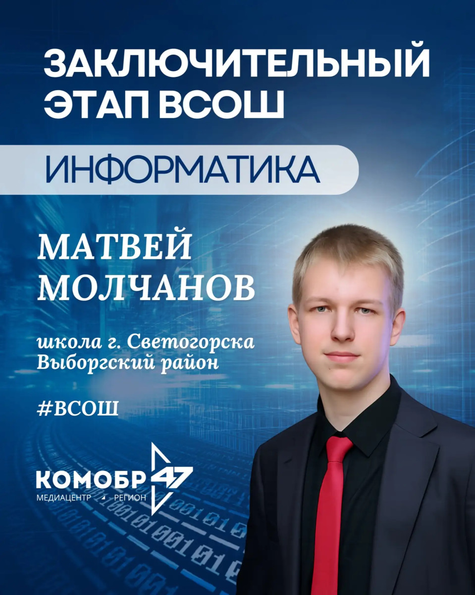 Ранее Online47 рассказывал, что школьники Ленинградской области выступят в финале Всероссийской олимпиады