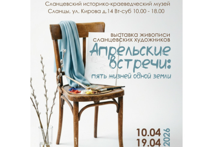 Сланцевский музей приглашает жителей и гостей района принять участие в ежегодной выставке «Апрельские встречи», посвящённой Дню рождения города Сланцы. В этом году выставка объединит самодеятельных художников Сланцевского района и гостей из Санкт-Петербурга.