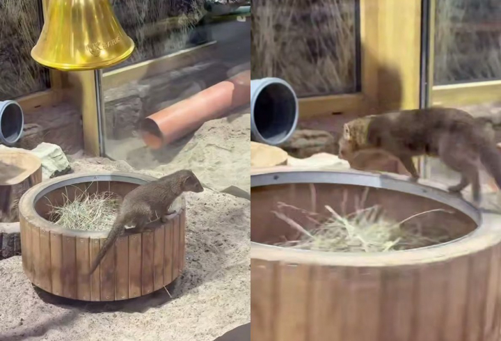 Необычный случай зафиксировали в Ленинградском зоопарке. Карликовый мангуст запрыгнул на край вращающегося тренажера с кормом, однако спуститься обратно у него не получилось. Тренажер раскрутил маленького хищника, и он не мог самостоятельно покинуть конструкцию, двигаясь с большой скоростью. Кадрами поделились в телеграм-канале учреждения.