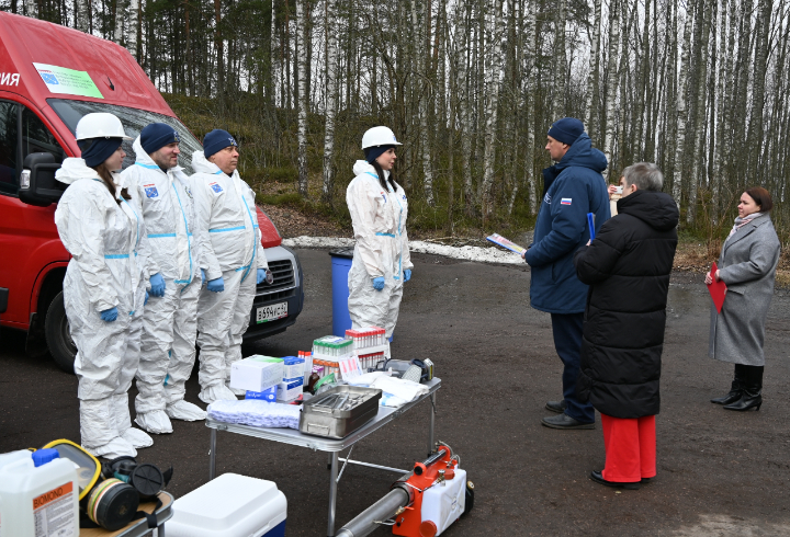 В рамках учений был проведен смотр техники мобильного отряда, проверена готовность специалистов, состояние оборудования и специализированного транспорта.