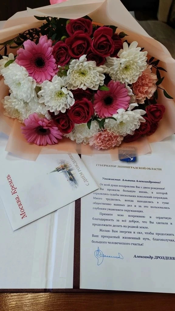 С важной датой долгожительницу поздравили на федеральном и региональном уровнях. Альвина Александровна получила поздравительные письма от Владимир Путин и губернатора Ленинградской области Александр Дрозденко.