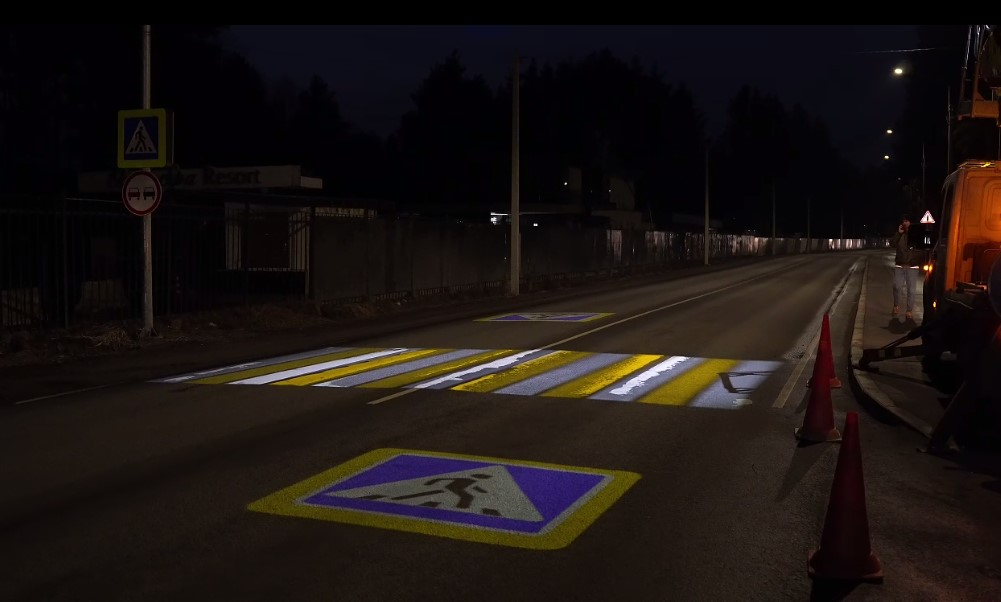 Проекторы наносят на дорожное полотно световую разметку и знак «пешеходный переход», что позволяет существенно повысить их видимость в темное время суток и при неблагоприятных погодных условиях во время дождя или снегопада.