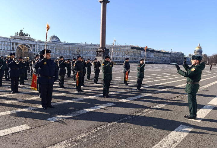 В Санкт-Петербурге на Дворцовой площади прошла первая репетиция сводного военного оркестра Санкт-Петербургского гарнизона в рамках подготовки к параду, приуроченному к 81-й годовщине Победы в Великой Отечественной войне. В репетиции были задействованы военные оркестры Северо-Западного округа Росгвардии: штаба округа, 33-й бригады оперативного назначения, специального моторизованного Измайловского полка, Центра подготовки личного состава и Военной академии Росгвардии. Общая численность участников сводного оркестра превышает 500 военнослужащих.