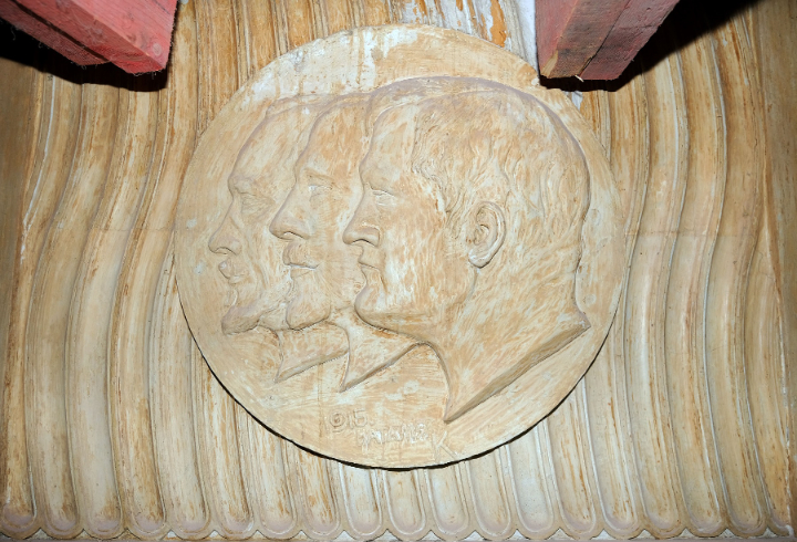 На днях во время работ по реставрации Дома Радио в Санкт-Петербурге под потолком Первой студии специалистами был обнаружен барельеф с изображением трех мужских профилей, датированный 1915 годом. Специалисты предполагают, что так были увековечены архитекторы здания – Василий, Владимир и Георгий Косяковы.