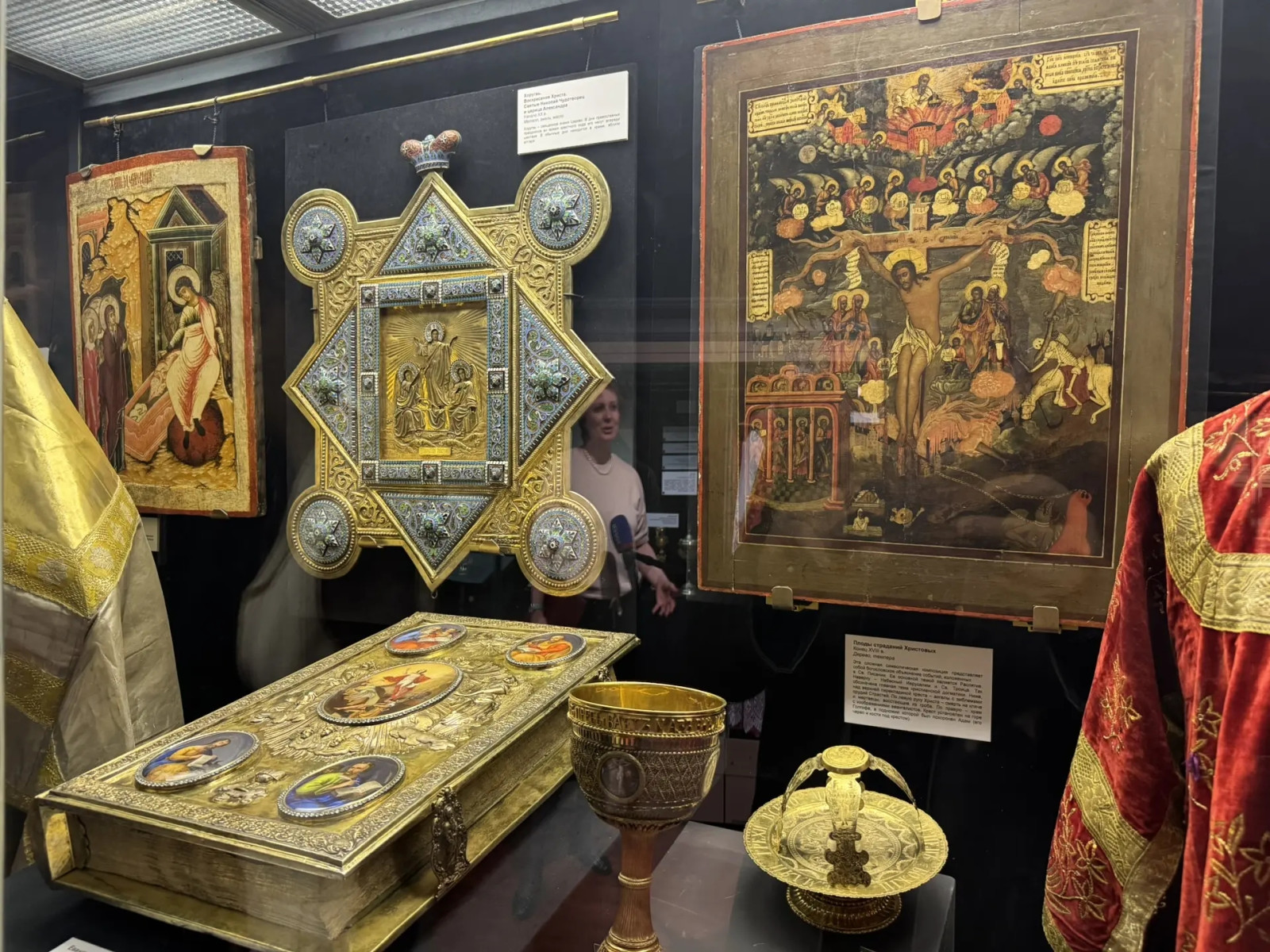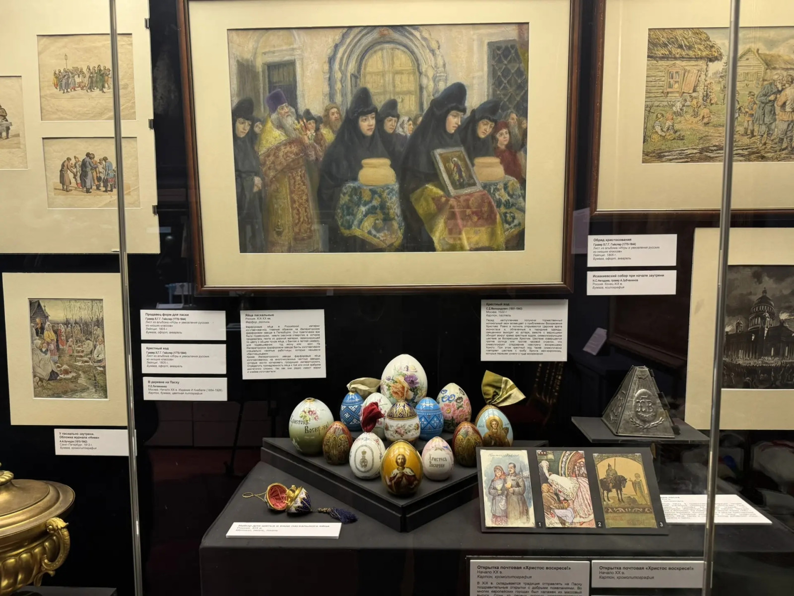 Среди ключевых экспонатов - произведения живописи, включая работу Михаила Нестерова «Воскресение Христа», пасхальные яйца XIX века, старинные открытки, религиозные тексты и литургические предметы. Особое внимание привлекают реконструкции праздничных столов - иудейского седера, православной и католической трапез.