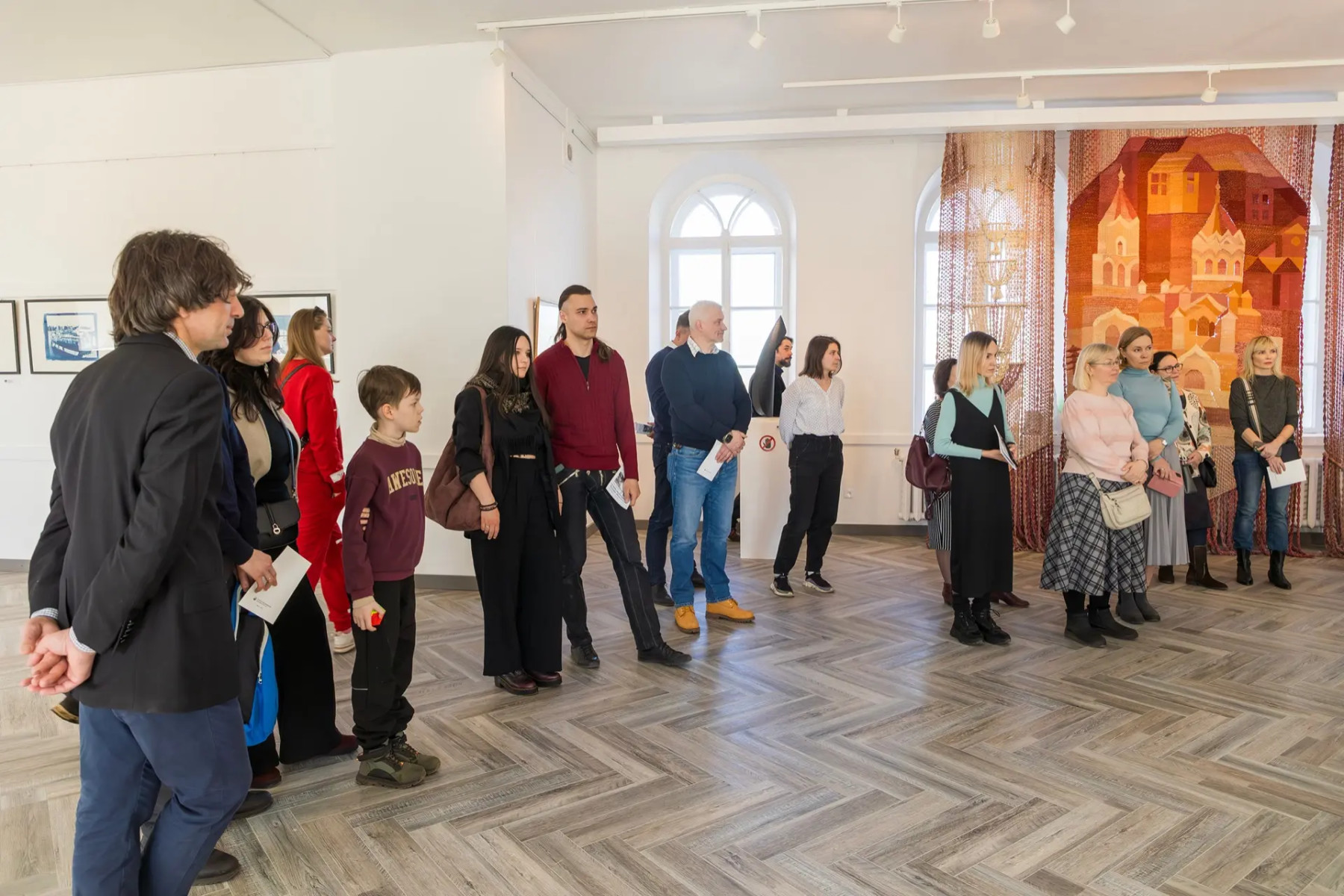 На вернисаже обзорную экскурсию провела директор Союза художников Ленинградской области и куратор выставки Мария Кошеверская.
