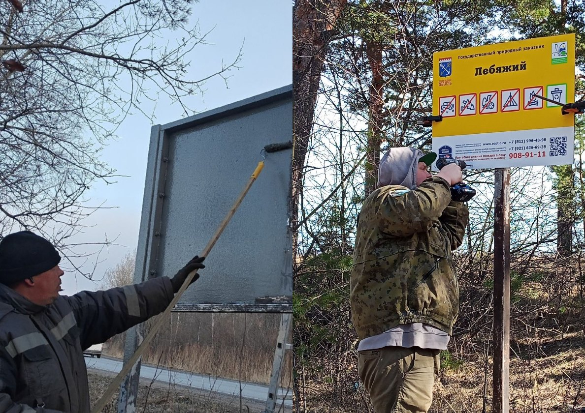 Сотрудники дирекции ООПТ Ленинградской области продолжают подготовку инфраструктуры особо охраняемых природных территорий к весенне-летнему сезону. В последнее время ремонтная бригада работала в заказниках «Лебяжий» и «Раковые озера», а также на территории памятника природы «Саблинский».