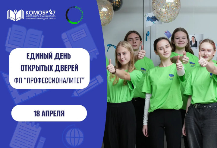 Десять учреждений среднего профессионального образования Ленинградской области станут площадками для Единого дня открытых дверей проекта «Профессионалитет». Как уточнили в комитете общего и профессионального образования Ленинградкой области, акция запланирована на 18 апреля.