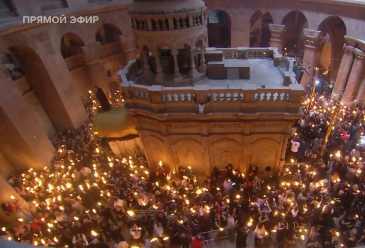 Церемонию возглавил патриарх Иерусалимский Феофил III. Святой Свет, как его еще называют, традиционно появляется в Кувуклии — часовне над скальной гробницей, где, согласно преданию, было совершено погребение и воскресение Иисуса Христа.