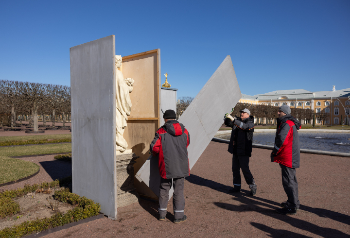 В музее-заповеднике «Петергоф» активно готовятся к летнему сезону. Накануне, 10 апреля, специалисты раскрыли скульптуры Верхнего сада — с подлинных статуй «Меркурий» и «Минерва» сняли защитные футляры. Как сообщили в пресс-службе ГМЗ, процесс начался еще 30 марта с демонтажа футляров на Большом каскаде в Нижнем парке.