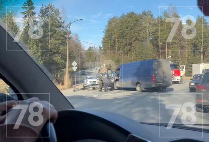 В Зеленогорске произошло ДТП с участием грузового микроавтобуса и легкового кроссовера. Авария случилась на пересечении улицы Широкая с Приморским шоссе.