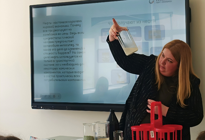 Также школьникам объяснили, что при работе с нефтью крайне важен и экологический фактор. ЧП в виде её разлива несёт серьёзные риски для экосистем: даже небольшое нефтяное пятно на воде угрожает животным и требует оперативного вмешательства.