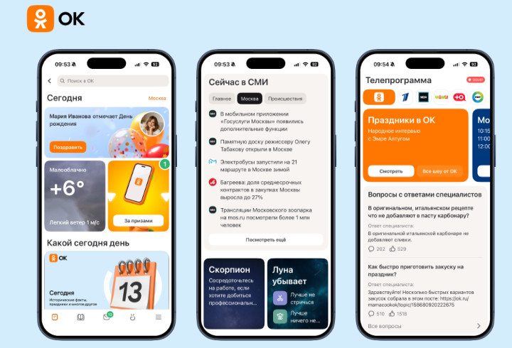 «Раздел «Сегодня» создан с учетом потребностей аудитории, которая, согласно нашим внутренним исследованиям, чаще всего заходит в сеть утром – чтобы изучить прогнозы, новости и полезные подборки. Мы вынесли на первый экран наиболее востребованные сервисы и материалы, чтобы пользователи могли начинать день с актуальной информации в удобном формате. Уже сейчас раздел посещают порядка 2 млн пользователей в день», –– комментирует директор по продукту ОК, Александр Москвичев.