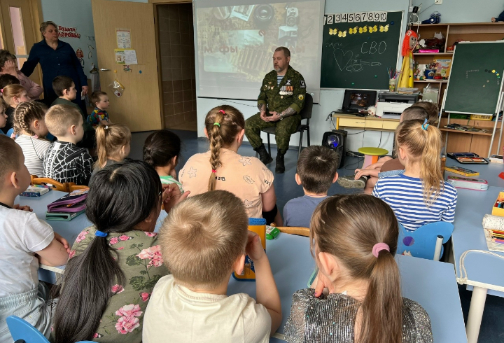 В дошкольном отделении школы № 2 в Сланцевском районе состоялась встреча воспитанников с участником специальной военной операции, сапером Владиславом Федоровым.
