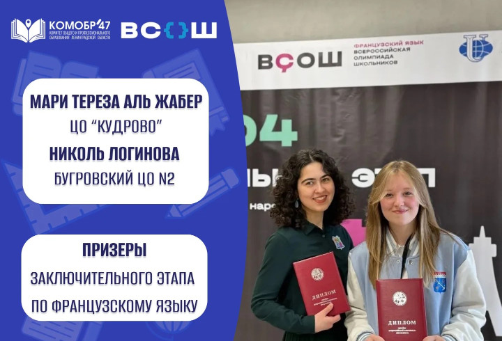 Две школьницы из Ленинградской области завоевали призовые места на заключительном этапе Всероссийской олимпиады школьников (ВсОШ) по французскому языку — одного из самых масштабных интеллектуальных состязаний для учащихся страны. Успех региона обеспечили Николь Логинова, обучающаяся в Бугровском ЦО № 2, и Мари Тереза Аль Жабер, представляющая ЦО «Кудрово».