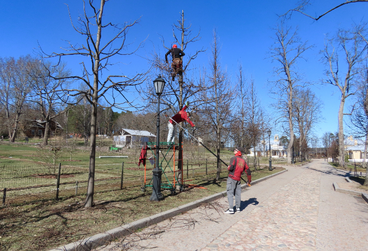 В парке Монрепо, который временно закрыт для традиционной весенней просушки, идут активные подготовительные работы. За две недели сотрудники музея-заповедника должны успеть подготовить территорию к летнему сезону. Уже сейчас на Входной аллее начали обрезать липы.
